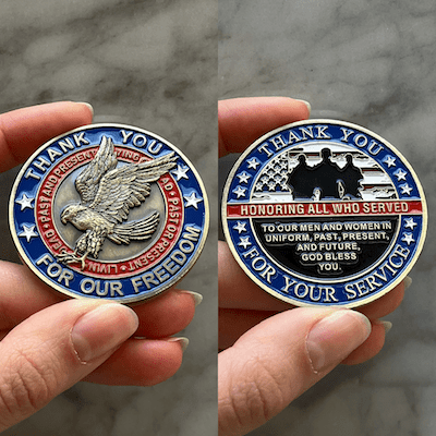 That "something" today is this challenge coin that I designed and to express my gratitude to all men and women who served our great country.